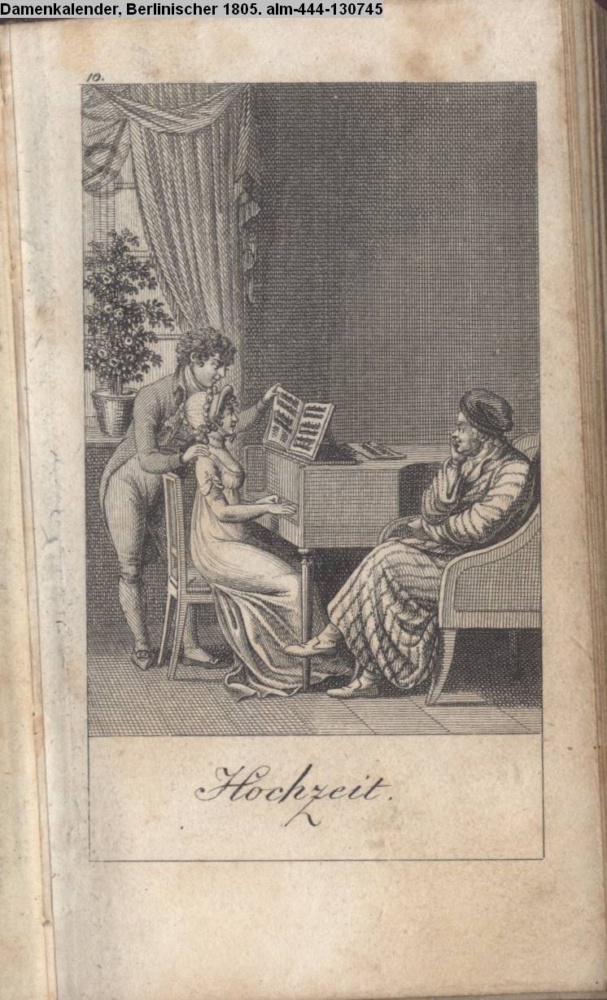 Graphik im Kalendarium August, nummeriert 10; Illustration zu »Gegenstücke aus dem menschlichen Leben« s. Textbezug INr 130761, Obj 29