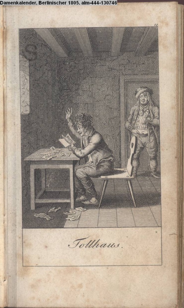 Graphik im Kalendarium Oktober, nummeriert 11; Illustration zu »Gegenstücke aus dem menschlichen Leben« s. Textbezug INr 130762, Obj 30