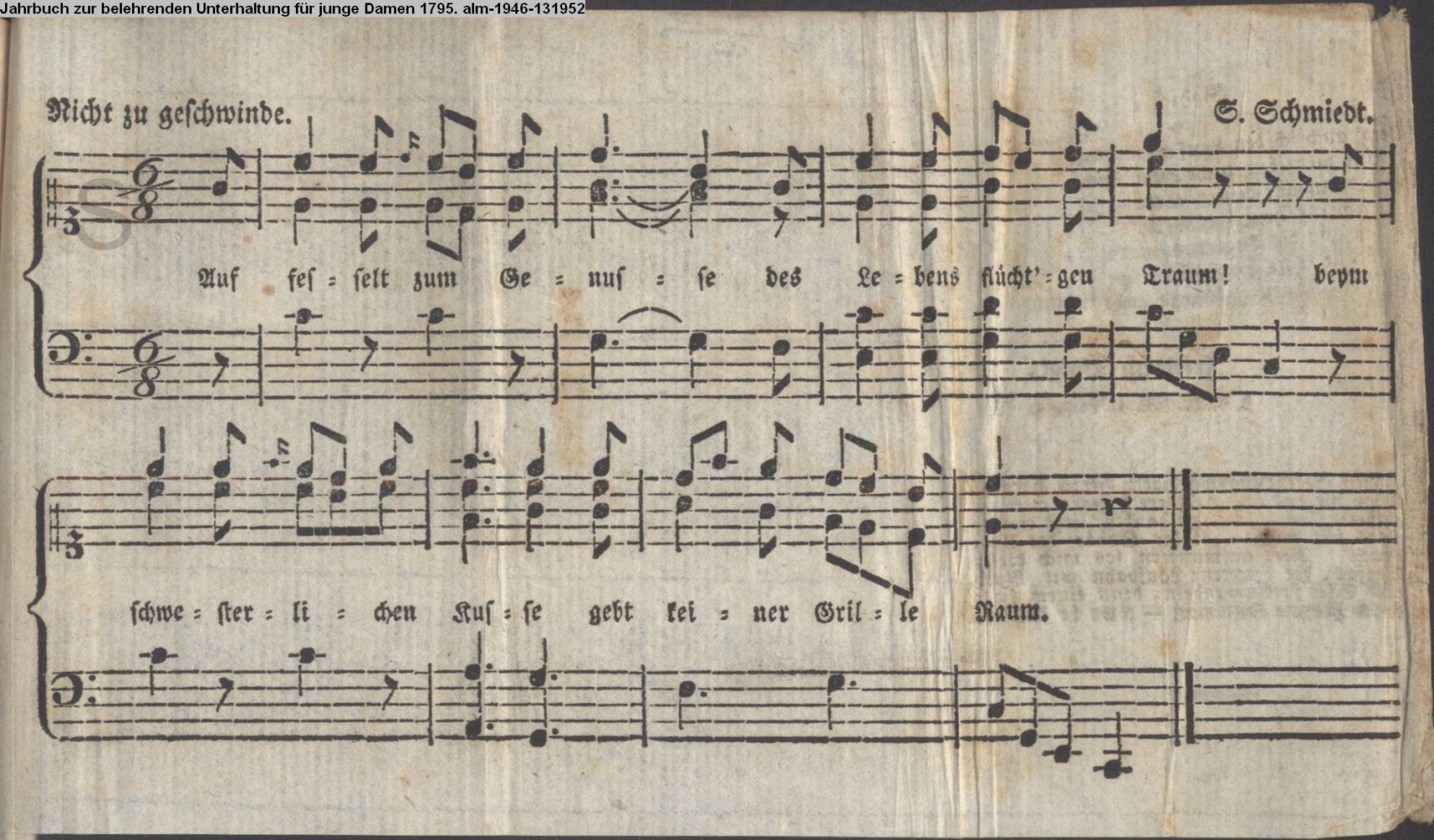 Vertonung des Gedichts »Gesellschaftliches Lied für junge Frauenzimmer« von Christian Friedrich Traugott Voigt