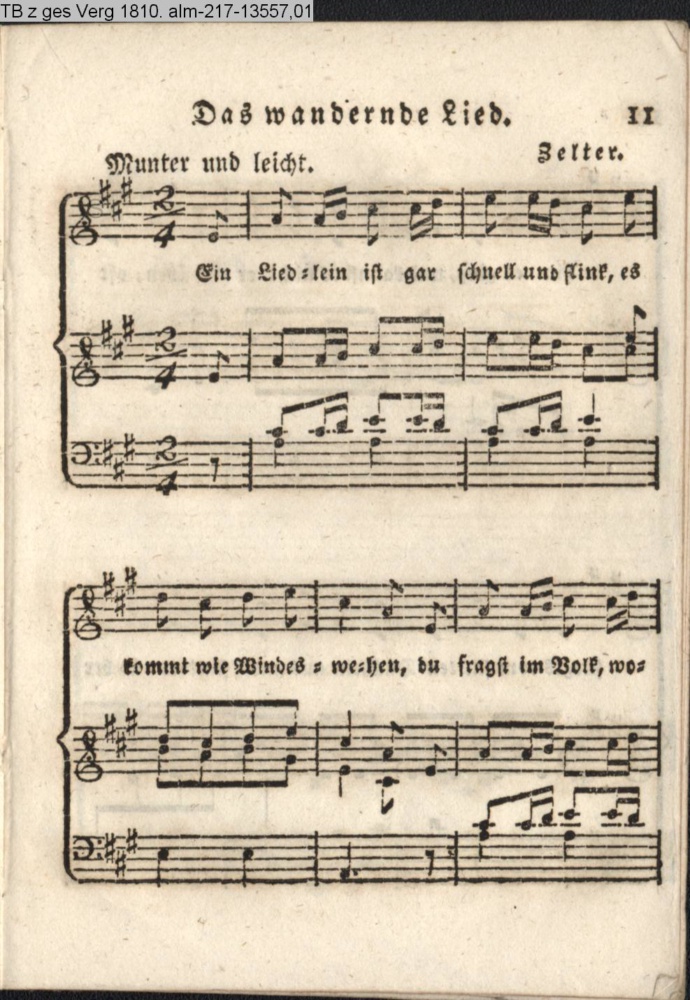 Vertonung des Gedichts »Das wandernde Lied« von St. Schütze. s.