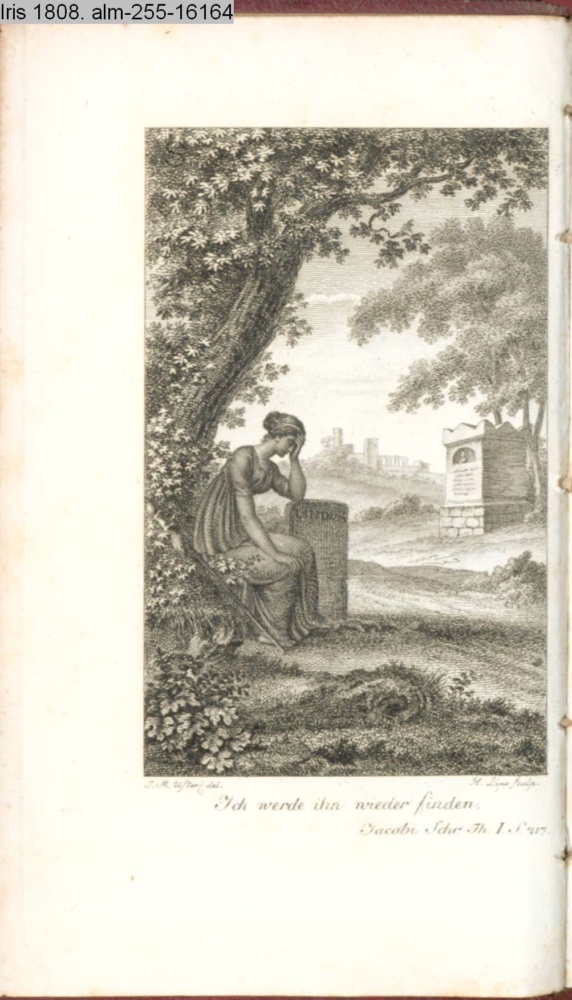 Titelgraphik. # Titelzusatz aus dem G-Verz: Elisa an dem Grabstein ihres Geliebten (Lindors). Illustration zu »Elysium« von J. G. Jacobi