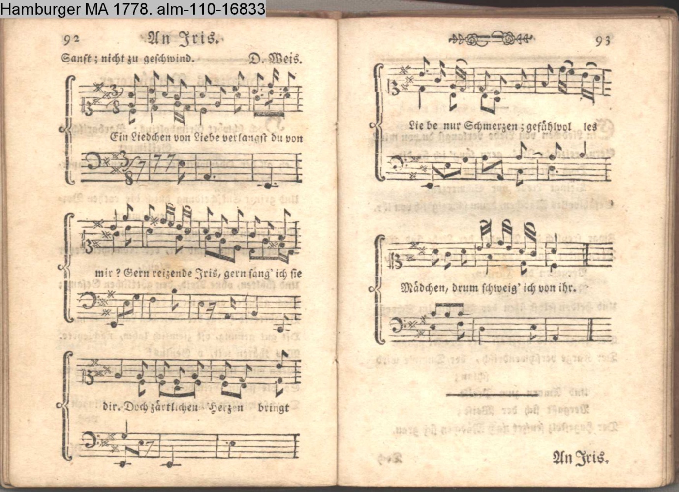 Vertonung des Gedichts »An Iris« von J. A. Weppen