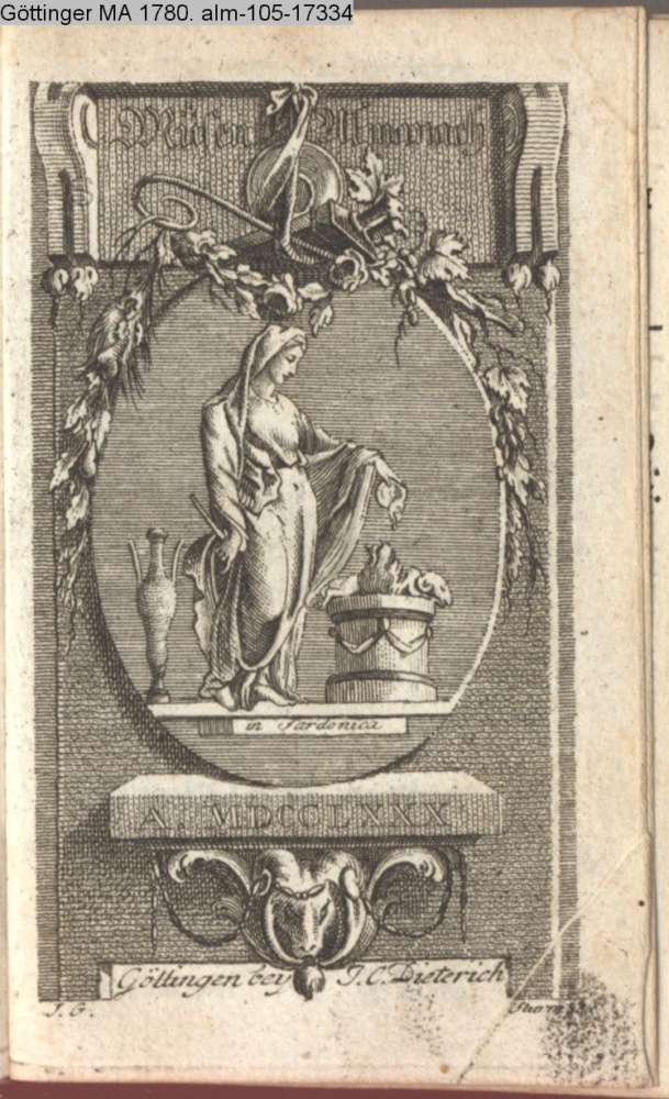 MusenAlmanach / in Sardonica / A. MDCCLXXX / Göttingen bey J. C. Dieterich