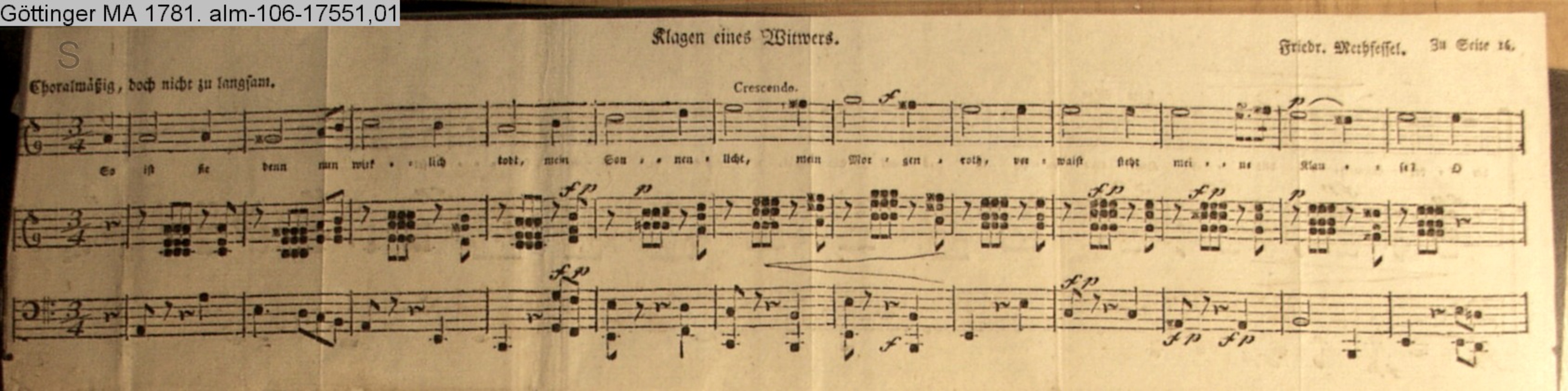 Vertonung des Gedichts »Klagen eines Witwers« von Schink