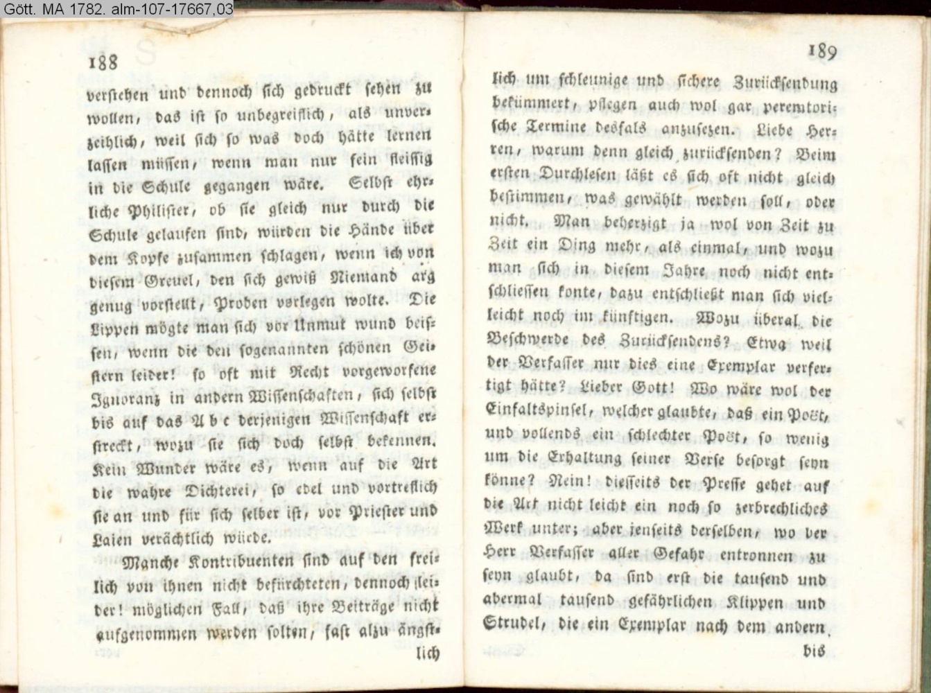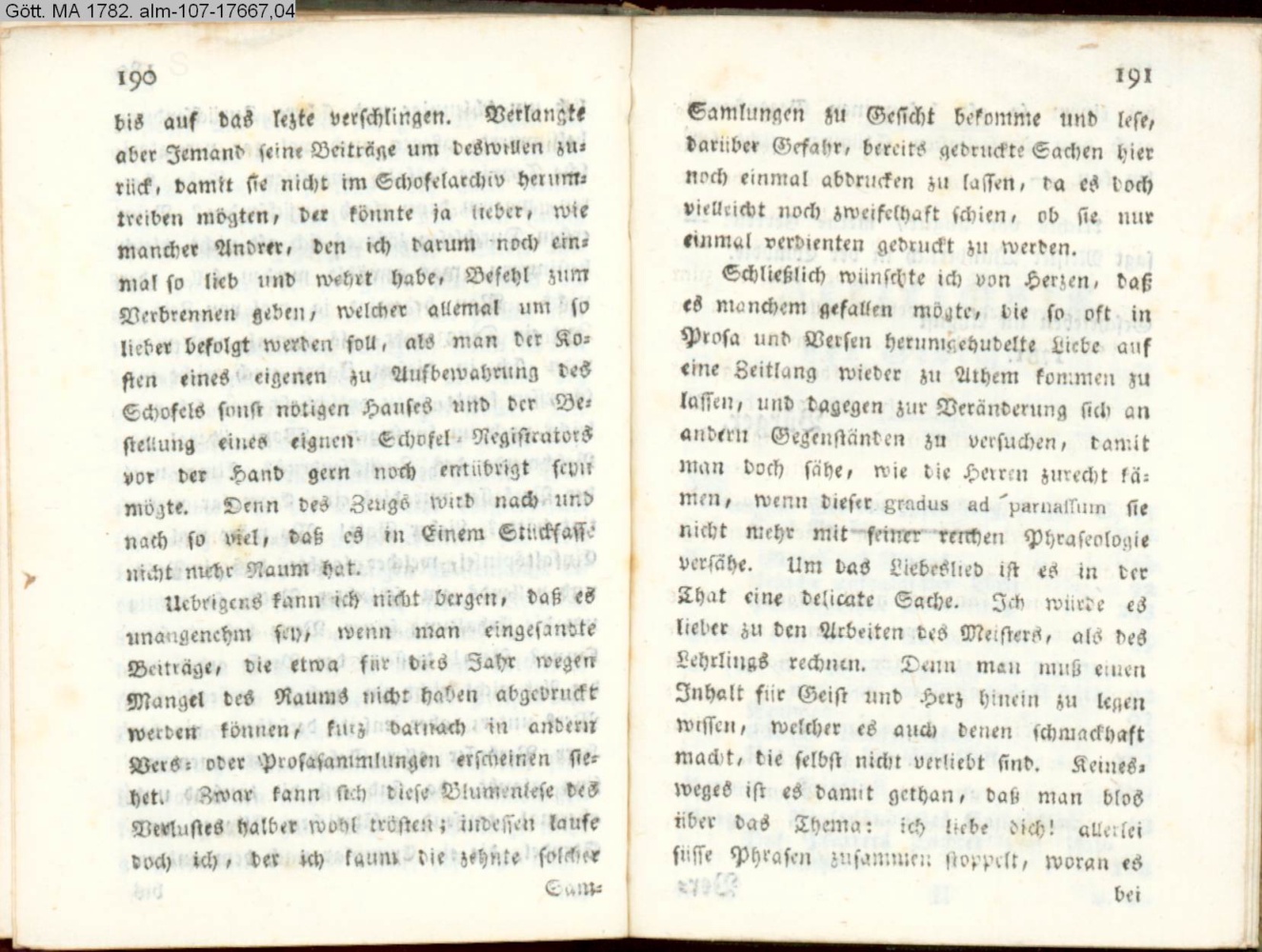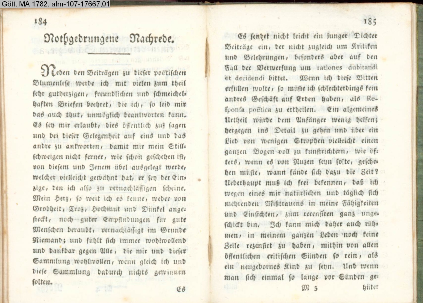 Neben den Beiträgen zu dieser poetischen Blumenlese werde ich mit vielen, zum theil sehr gutherzigen, freundlichen und schmeichelhaften Briefen beehret,…
