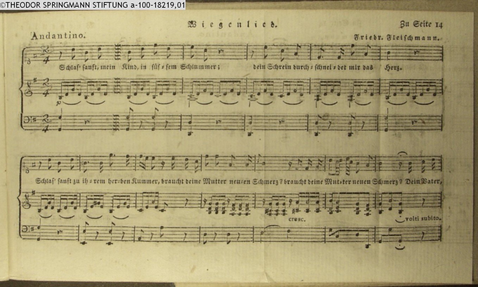 Vertonung des Gedichts »Wiegenlied« von Luise, Fürstin von Neuwied