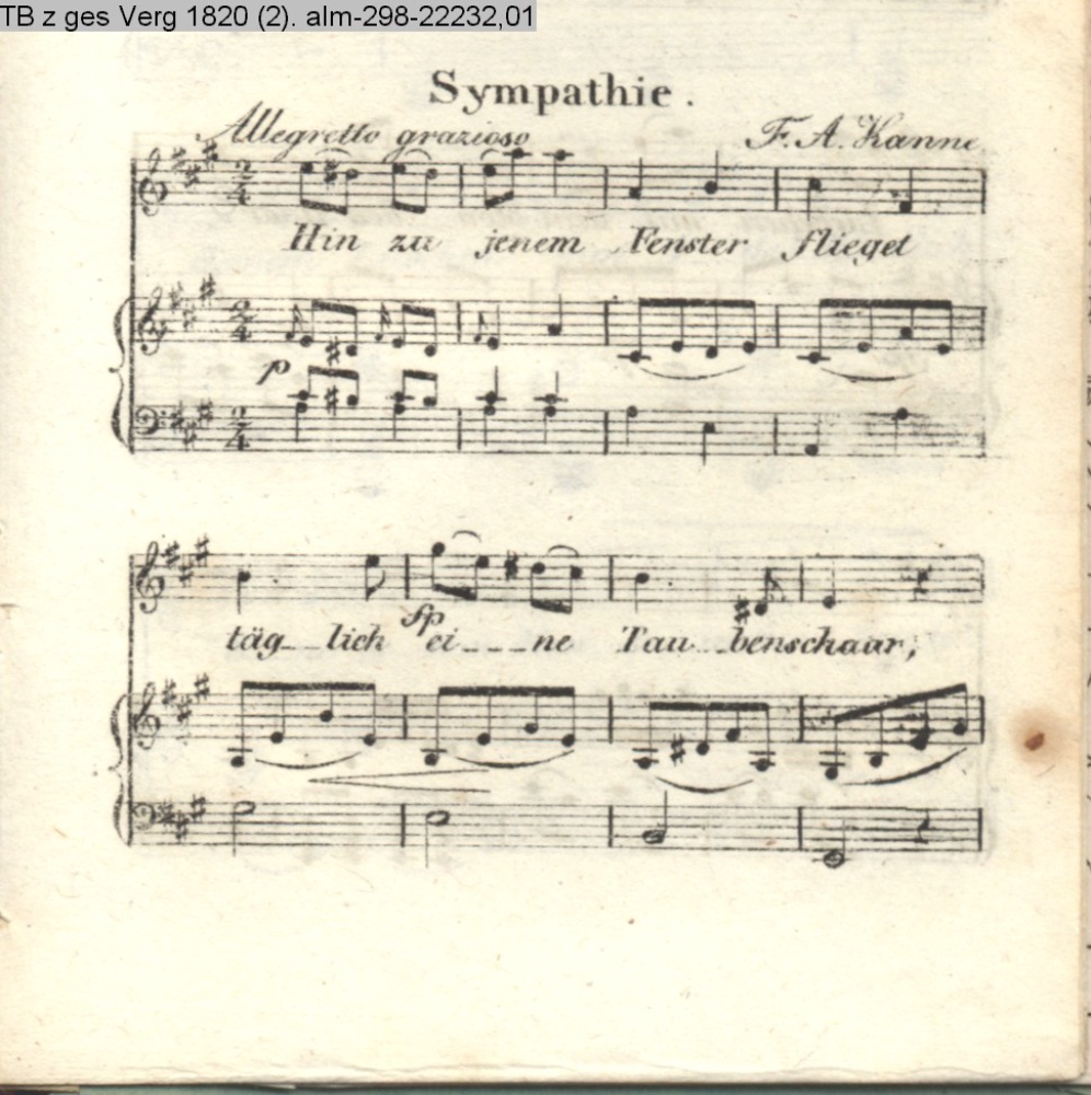 Musik zu dem Taschenbuch zum geselligen Vergnügen auf das Jahr 1820 (Sammlung INr 22229, Obj 118) (Photos 22232,01; 22232,02)