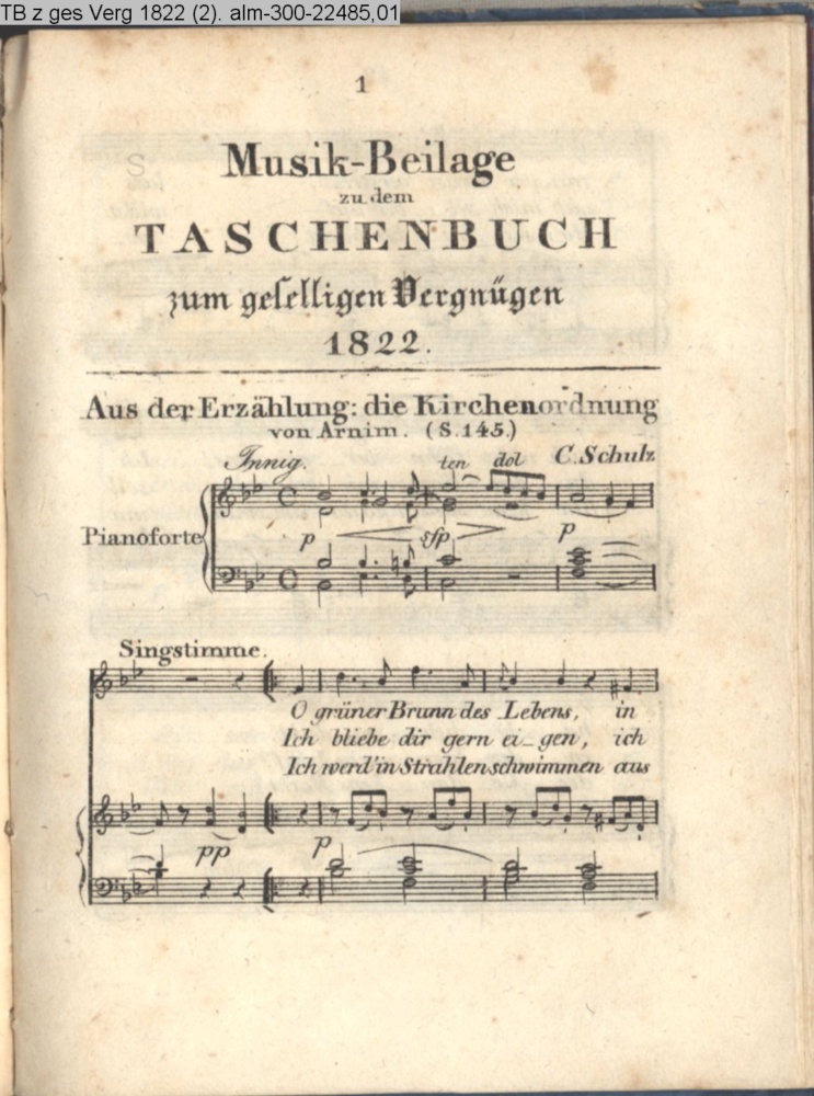 INr 22404, Obj 28 Musik-Beilage zu dem Taschenbuch zum geselligen Vergnügen 1822 (Sammlung INr 22484, Obj 107) (Photos 22485,01-22485,03)