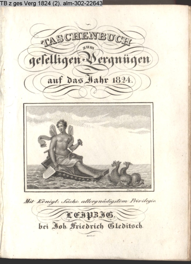 TASCHENBUCH / zum / geselligen Vergnügen / auf das Jahr 1824. / Mit Königl. Sächs. allergnädigstem Privilegio. / LEIPZIG, / bei Joh. Friedrich Gleditsch