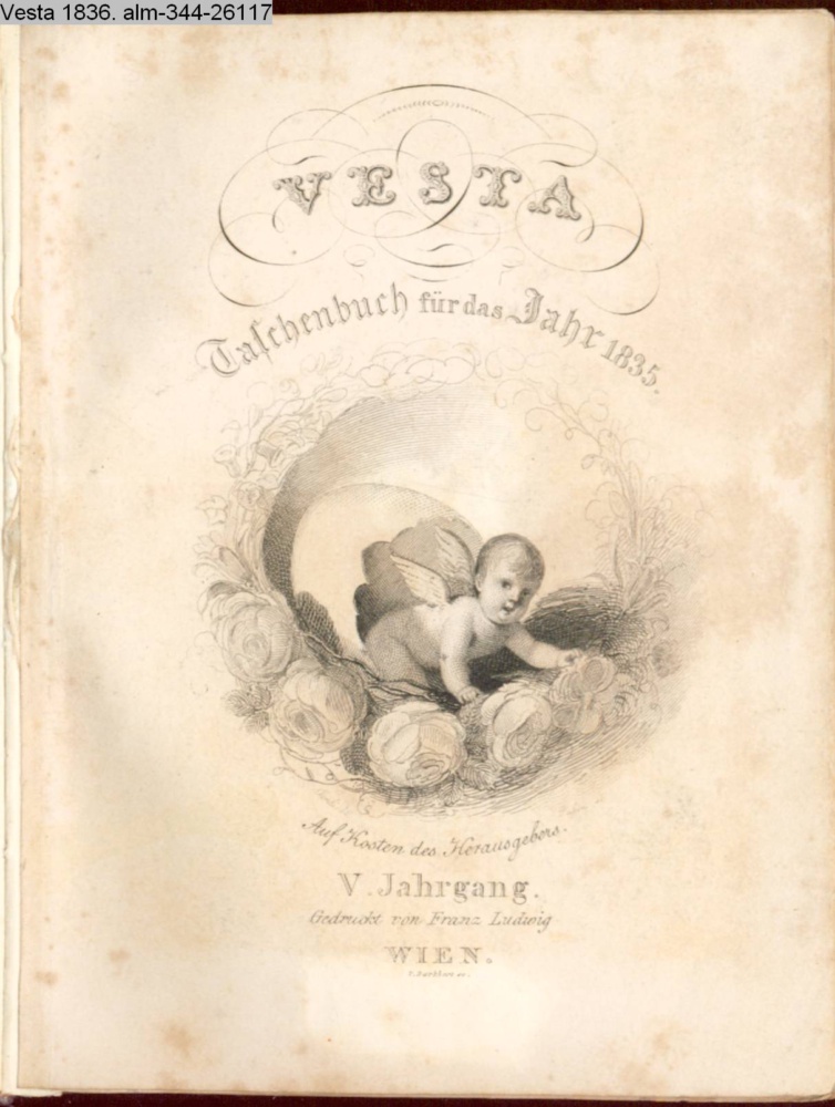 VESTA / Taschenbuch für das Jahr 1835. / Auf Kosten des Herausgebers. / V. Jahrgang. / Gedruckt von Franz Ludwig / WIEN