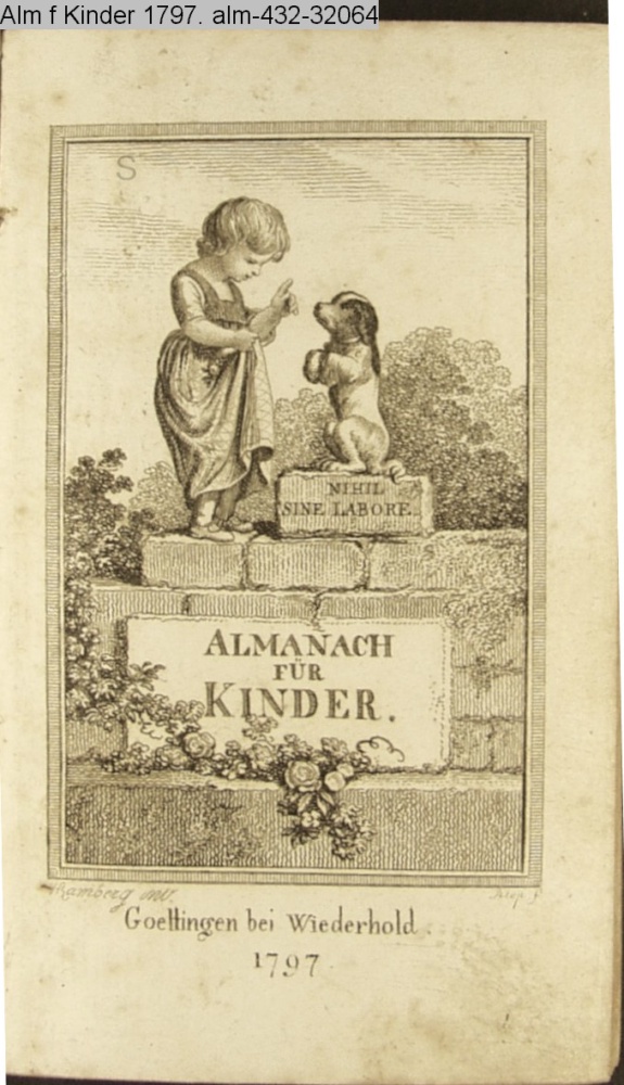 NIHIL / SINE LABORE. / ALMANACH / FÜR / KINDER. / Goettingen bei Wiederhold / 1797