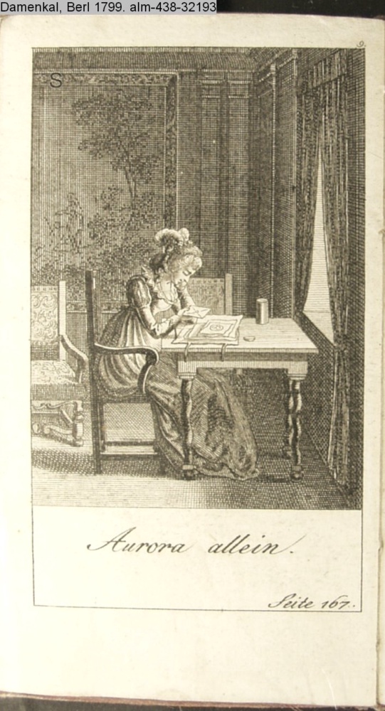 # Bezeichnung an der 1. Graphik im Kalendarium. paginiert 9. Illustration zu »Aurora von Königsmark« von L. D. Gloxin s. Textbezug
