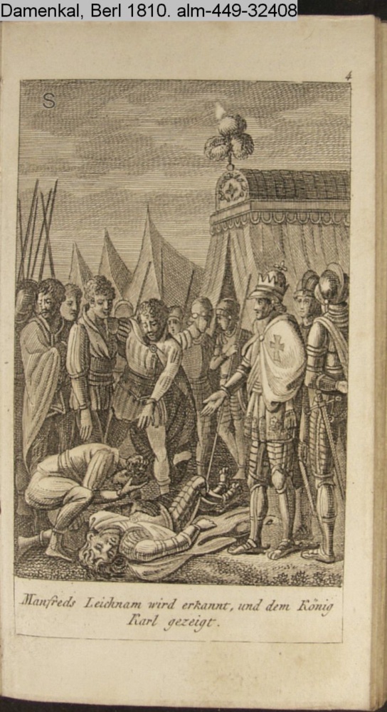 Manfreds Leichnam wird erkannt, und dem König / Karl gezeigt