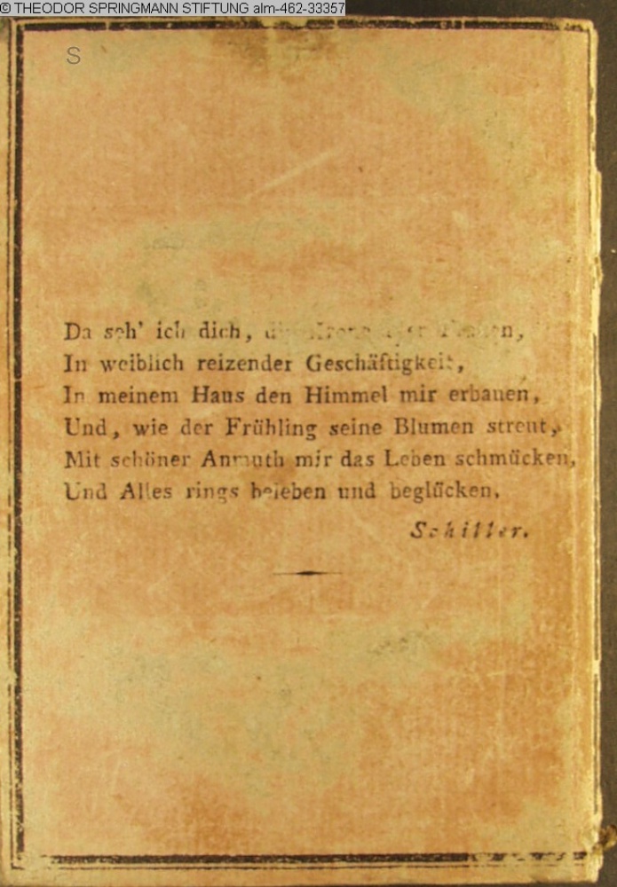 Da seh' ich dich, die Krone der Frauen, / In weiblich reizender Geschäftigkeit,…