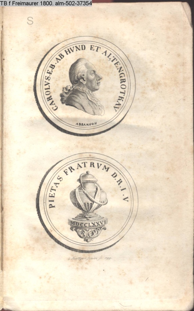 CAROLUS E. B. AB HUND ET ALTENGROTKAU / ABRAMSON / PIETAS FRATRUM D. R. I. V. / MDCCLXXVI