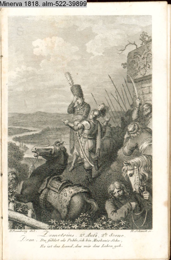 Demetrius. 2r. Aufz. 2te. Scene. / Dem. Du fühlst als Pohle, ich bin Moskau's Sohn, / Es ist das Land, das mir das Leben gab.