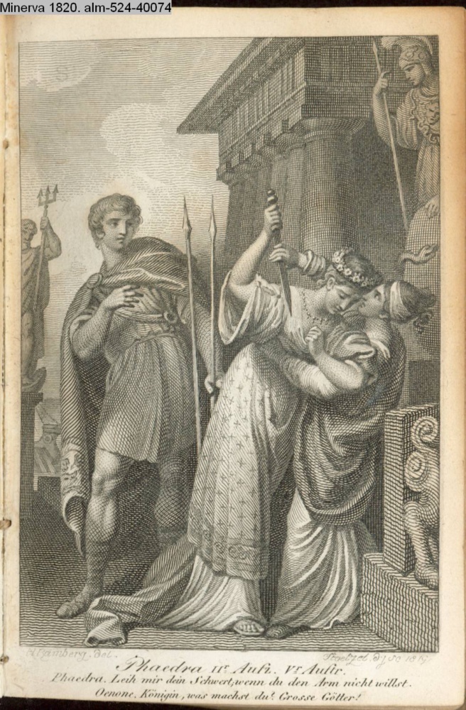 Phaedra IIr. Aufz. Vr. Auftr. / Phaedra. Leih mir dein Schwert, wenn du den Arm nicht willst. / Oenone. Königinn, was machst du? Grosse Götter!