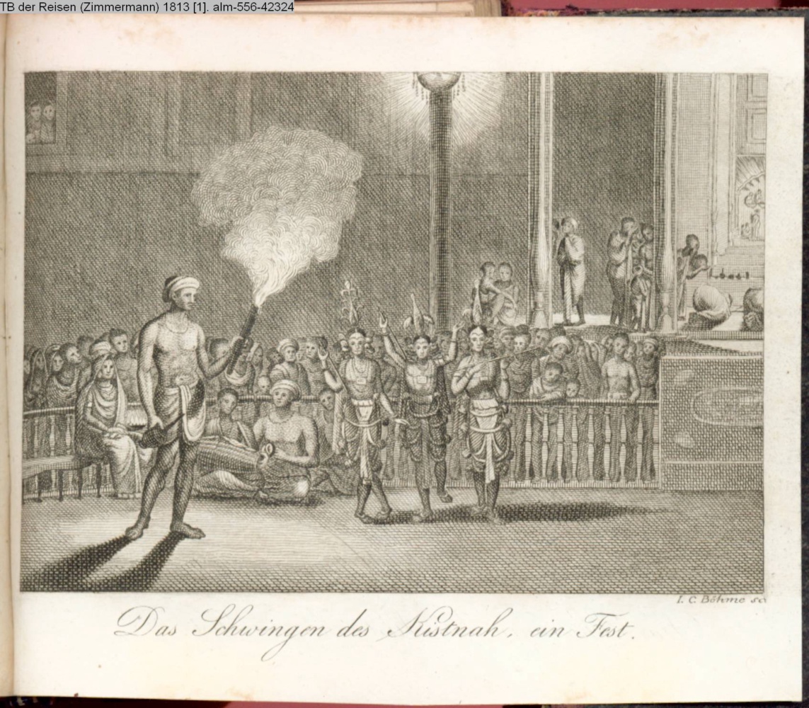 lt. G-Verz: aus Solvyns; d.i.: Solvyns, Balthazar: A Collection of Two Hundred and Fifty Coloured Etchings of the Manners, Customs, and Dress of the Hindous, Calcutta 1799; oder: Les Hindous, ou description de leurs moeurs, côtumes, cérémonies etc, dessinés d'après nature dans le Bengale et représentés en 292 planches, 4 Bde, Paris 1808-1812
