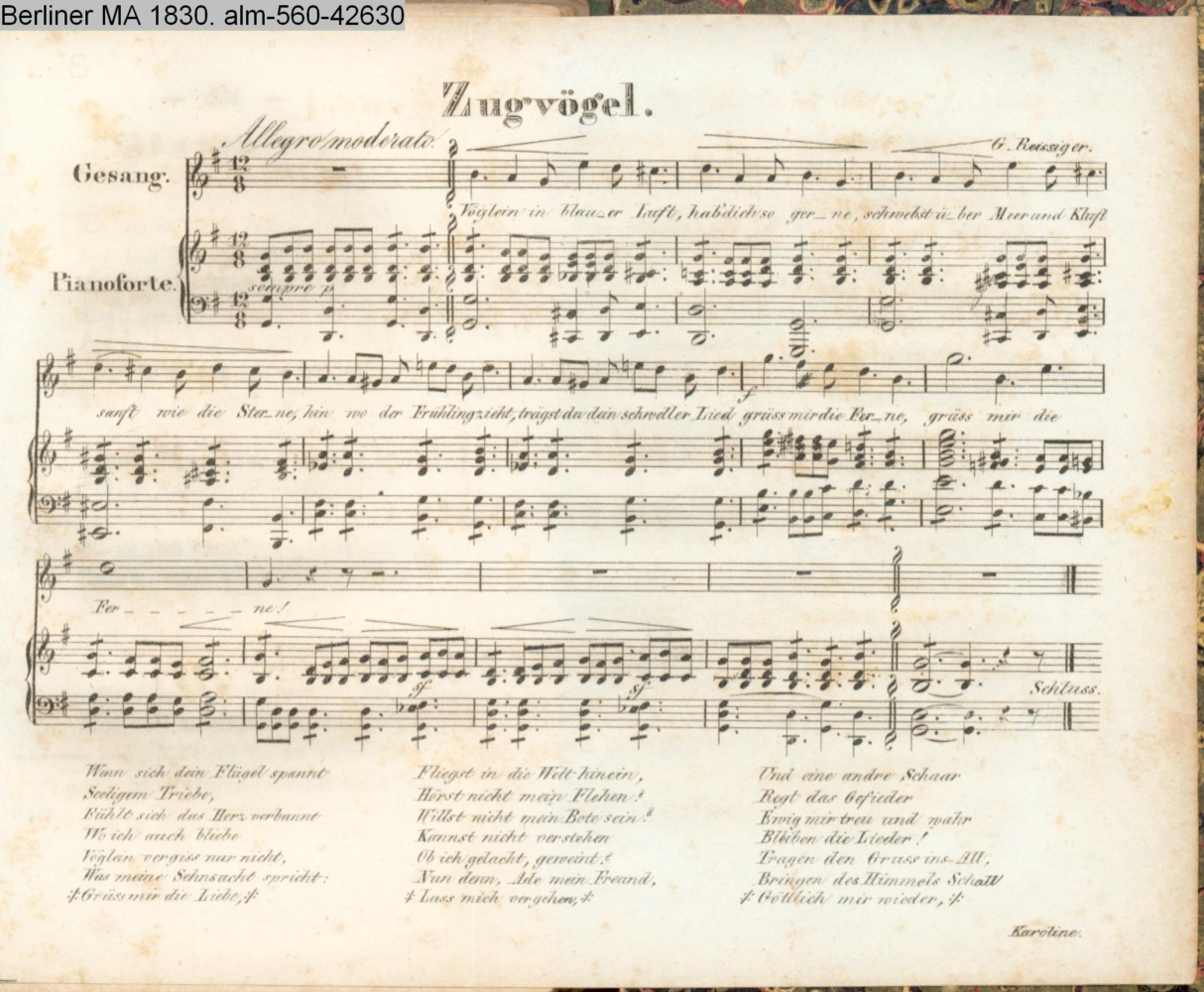 Vertonung des Gedichts »Zugvögel« von Karoline d.i. vermutl. Engelhard, Karoline