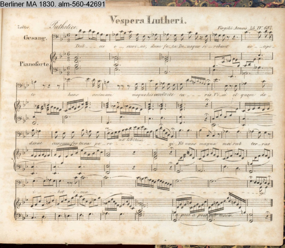Vertonung der Verse »Dulces exuviae, dum fata Deusque sinebant [...]« aus dem 4. Buch der Aenaeis s.