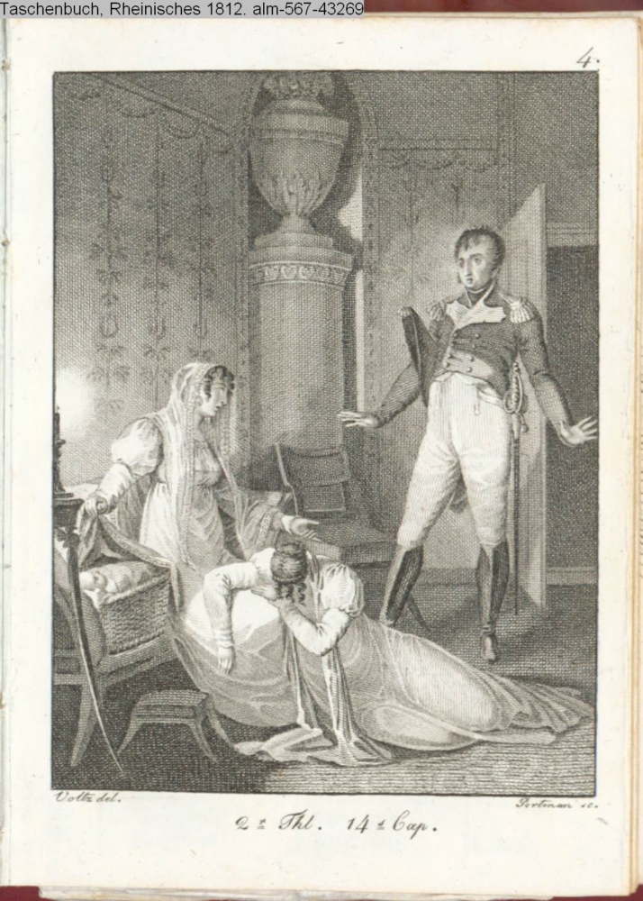 Graphik im Kalendarium paginiert 4. Illustration zu »Die Wahlverwandschaften« [2. Teil, 14. Kapitel] von J. W. von Goethe, Tübingen 1809; s. Textbezug