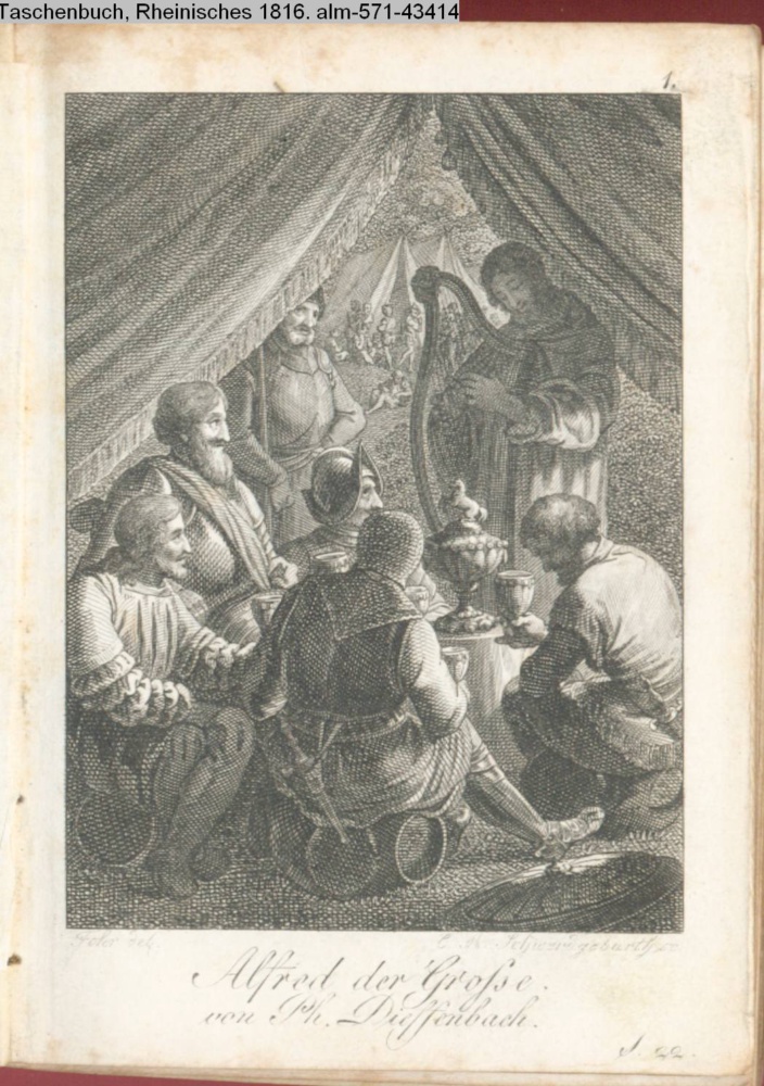 Graphik im Kalendarium paginiert 1. Illustration zu »Alfred der Große, König von England« von Ph. Dieffenbach