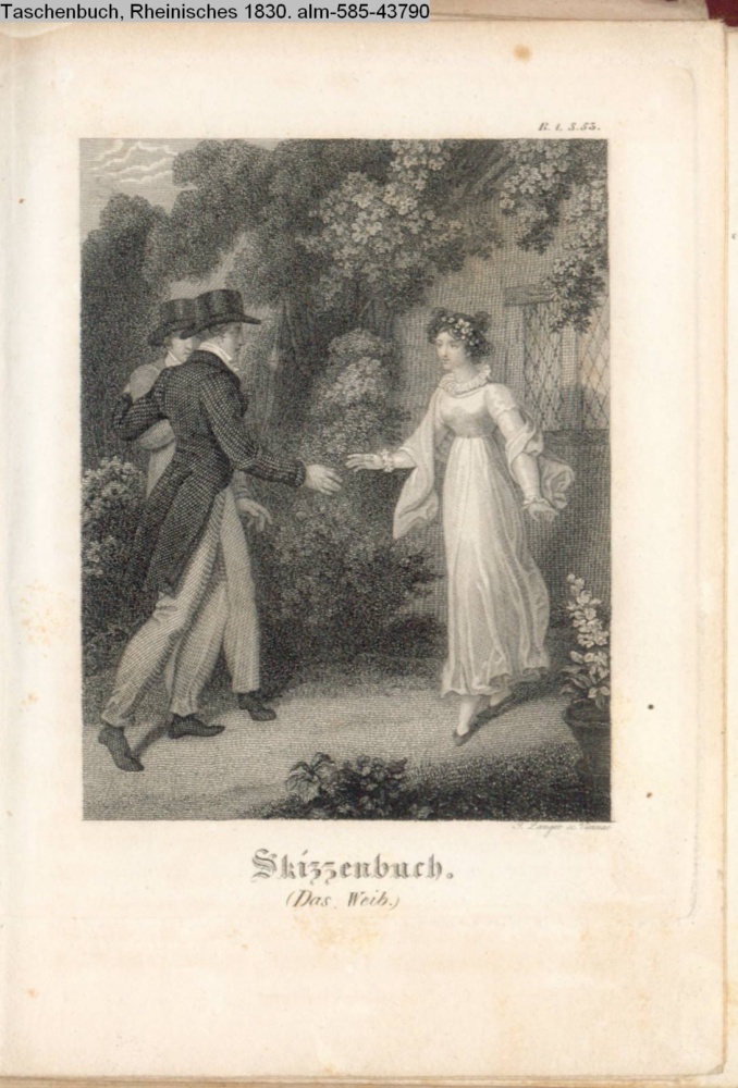 Illustration zu »Skizzenbuch. Das Weib« von W. Irving; am oberen rechten Rand: B. 1. S. 53. s. Textbezug