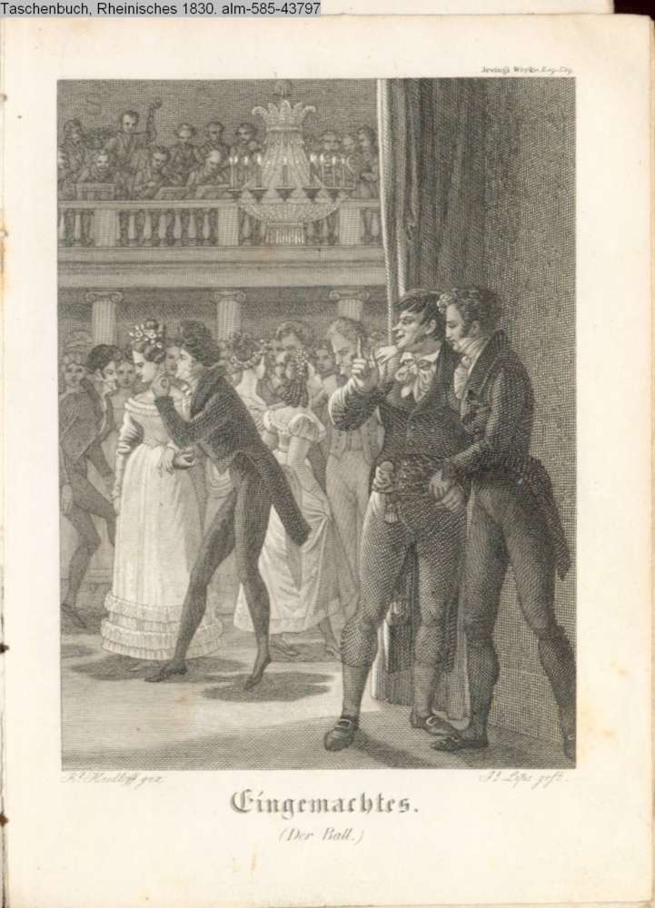 Illustration zu »Eingemachtes. Der Ball« von W. Irving ; am oberen rechten Rand: Irvings Werke B. 19. S. 29. s. Textbezug