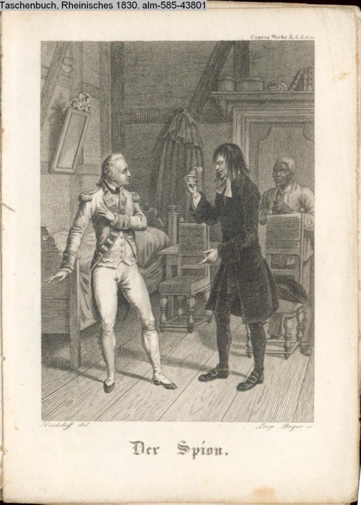 Illustration zu »Der Spion« von J. F. Cooper ; am oberen rechten Rand: Cooper's Werke B. 5. S. 100 s. Textbezug