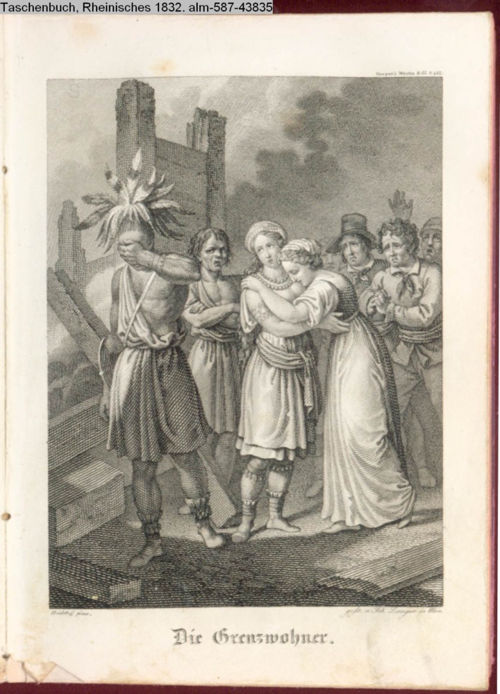 Illustration zu »Die Grenzbewohner« von J. F. Cooper; am oberen rechten Rand: Cooper's Werke B. 55. S. 243 s. Textbezug