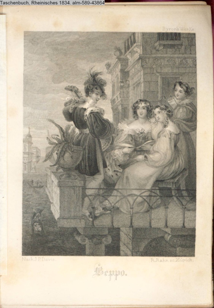am oberern rechten Rand: Byron's Werke. Illustration zu »Beppo« von George Gordon Byron s. Textbezug