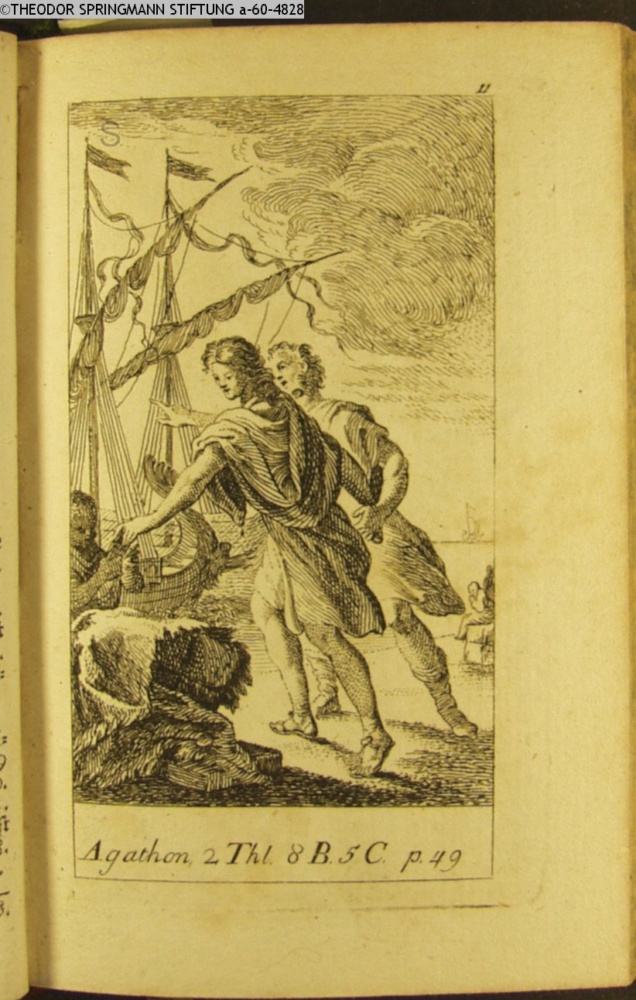 Graphik im Kalendarium. paginiert 11. # Bezeichnung an 6 von 12 Graphiken der Suite. Illustration zu »Agathon« von C. M. Wieland