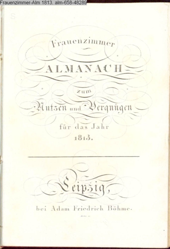 Frauenzimmer / ALMANACH / zum / Nutzen und Vergnügen. / für das Jahr / 1813. / Leipzig / bey Adam Friedrich Böhme