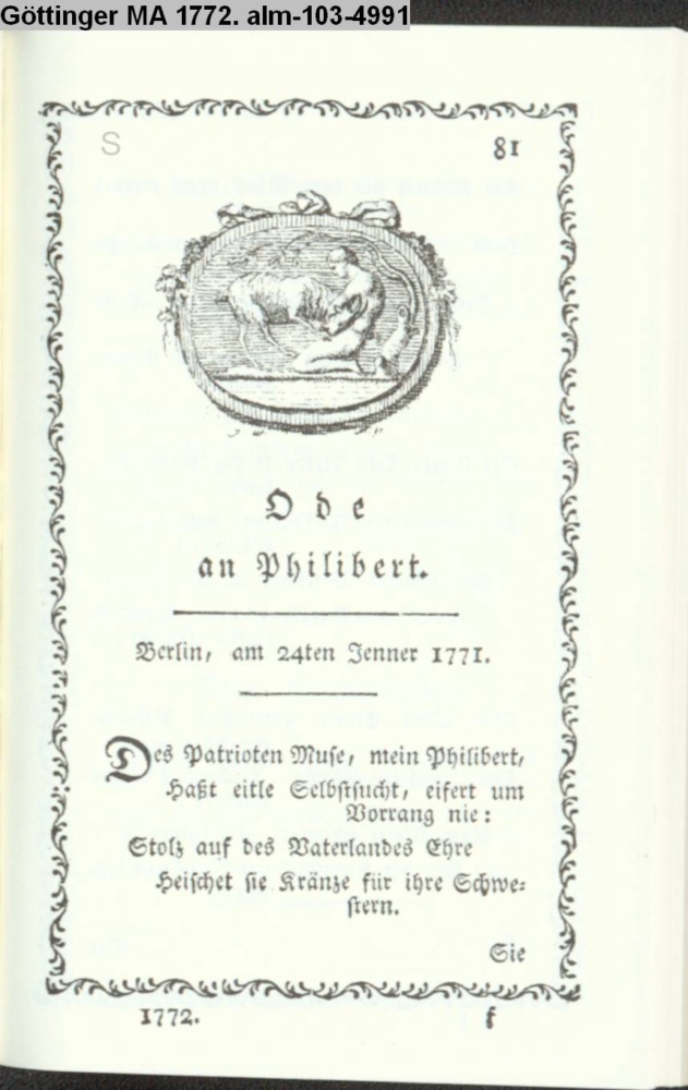 Ode / an Philibert. / Berlin, am 24ten Jenner 1771