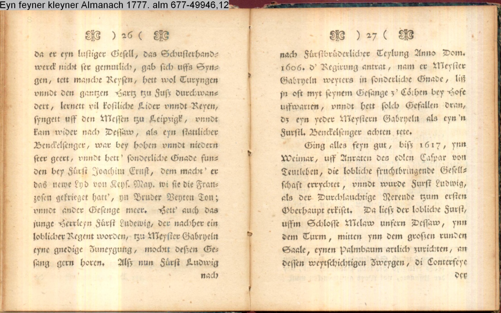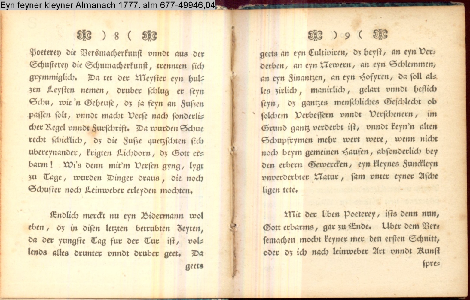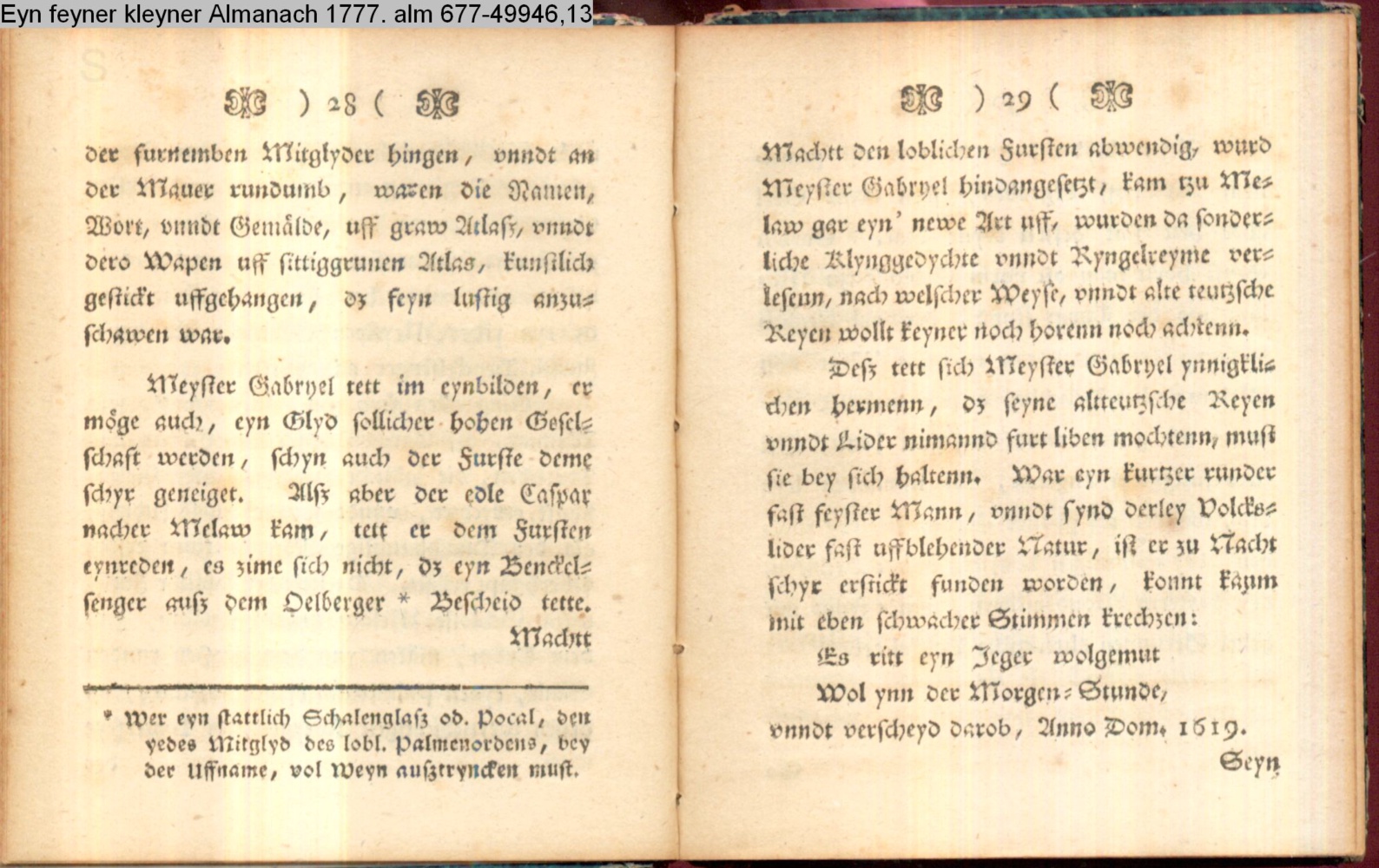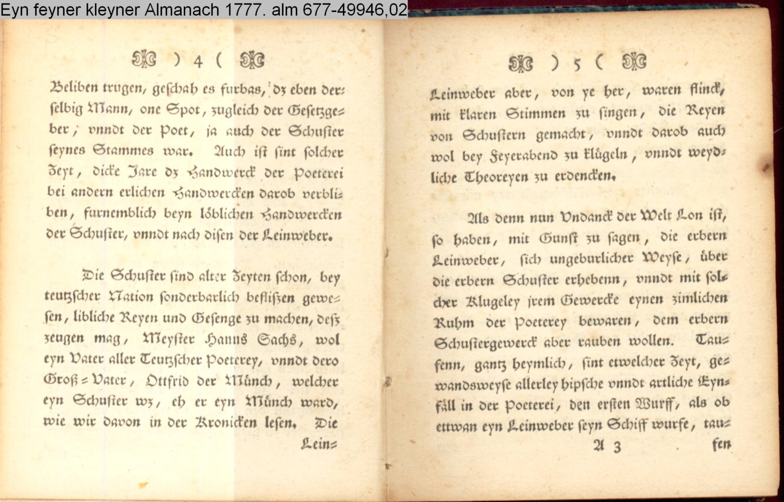 Gunstiger liber Leser. Es ist traun dz edle Handwerck der Poeterey, mit dem edlen Handwerck der Schusterey, so demselbigen gleichbürtig, nicht unbilllichenen tzu vergleichen.…