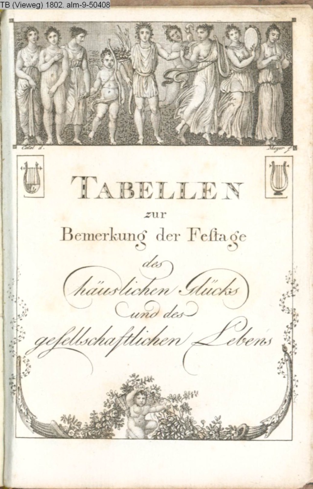 TABELLEN / zur / Bemerkung der Festtage / des häuslichen Glücks / und des / gesellschaftlichen Lebens