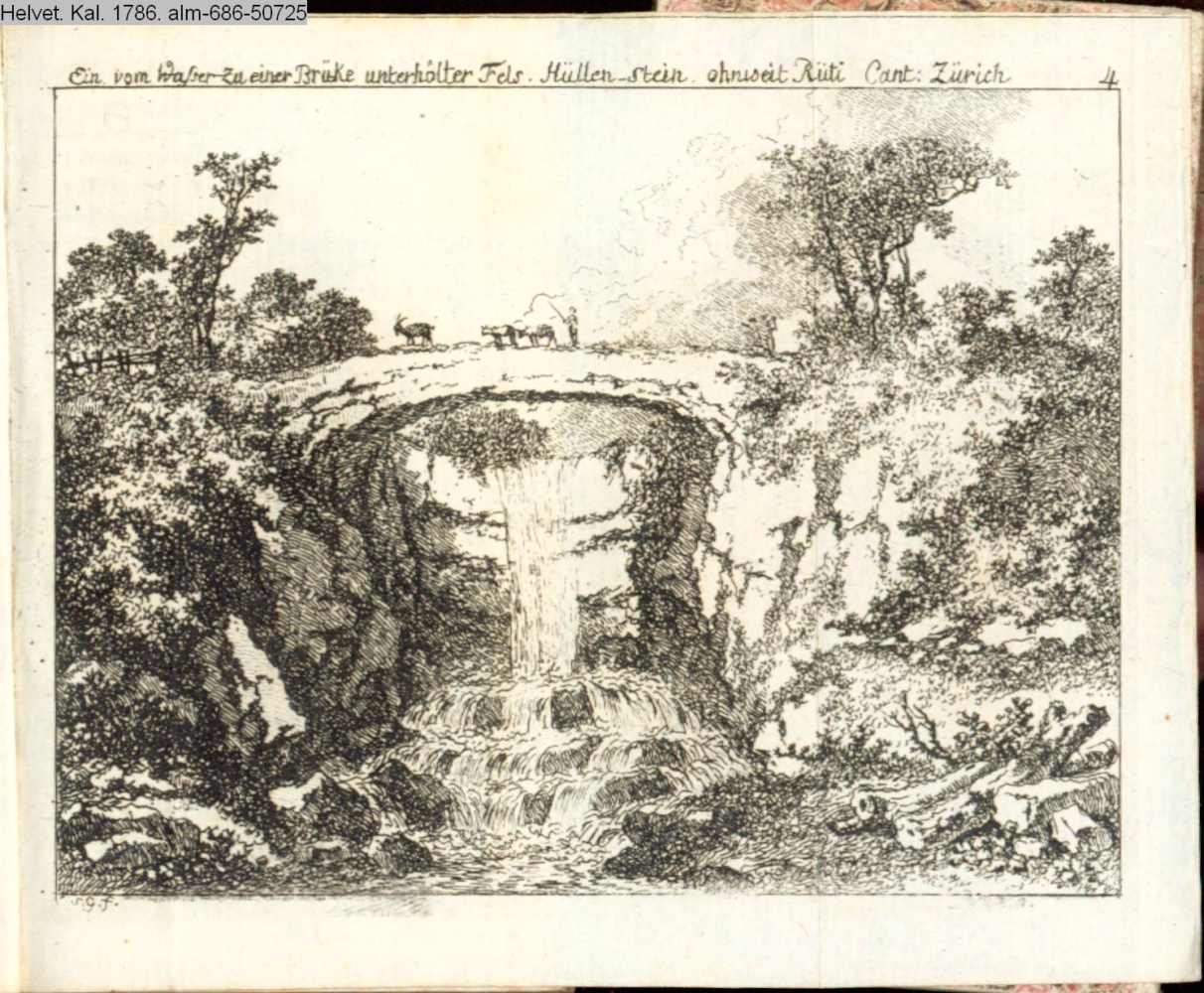 Ein vom Wasser zu einer Brüke unterhölter Fels. Hüllen-Stein ohnweit Rüti Cant. Zürich