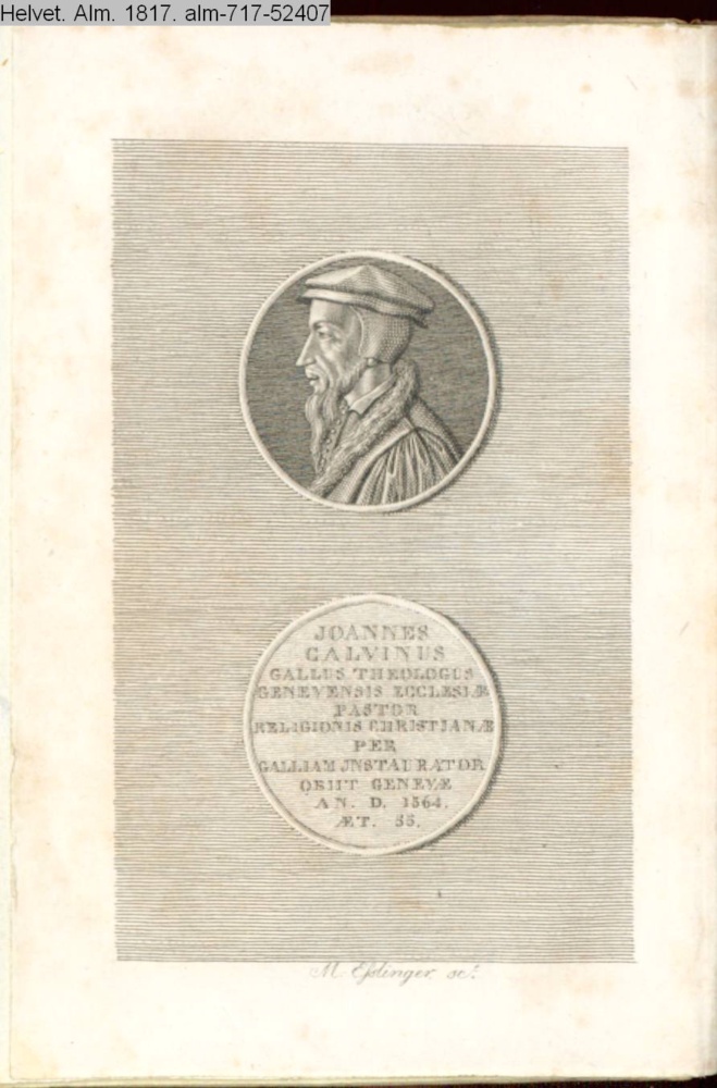 JOANNES / CALVINUS / GALLUS THEOLOGUS / GENEVENSIS ECCLESIAE / PASTOR / RELIGIONIS CHRISTIANAE / PER / GALLIAM INSTAURATOR / OBIIT GENEVAE / AN. D. 1564. AET 55