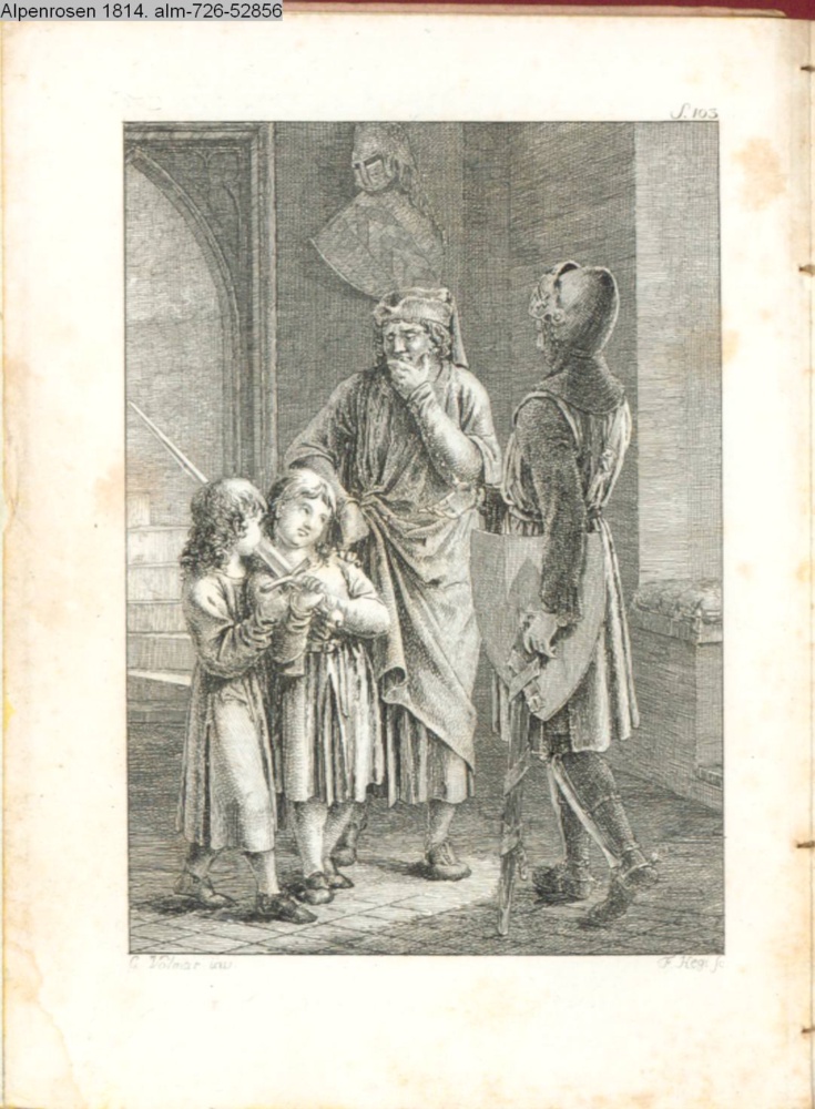 Titelgraphik. Illustration zu »Rudolph von Erlach und der Graf von Nidau« von J.R. Wysz d.J.