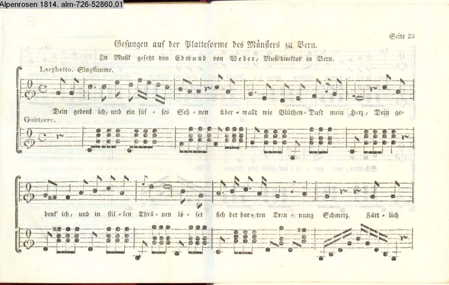 Vertonung des Gedichts »Gesungen auf der Platteforme des Münsters zu Bern« von Emilie Harmes geb. v. Oppel