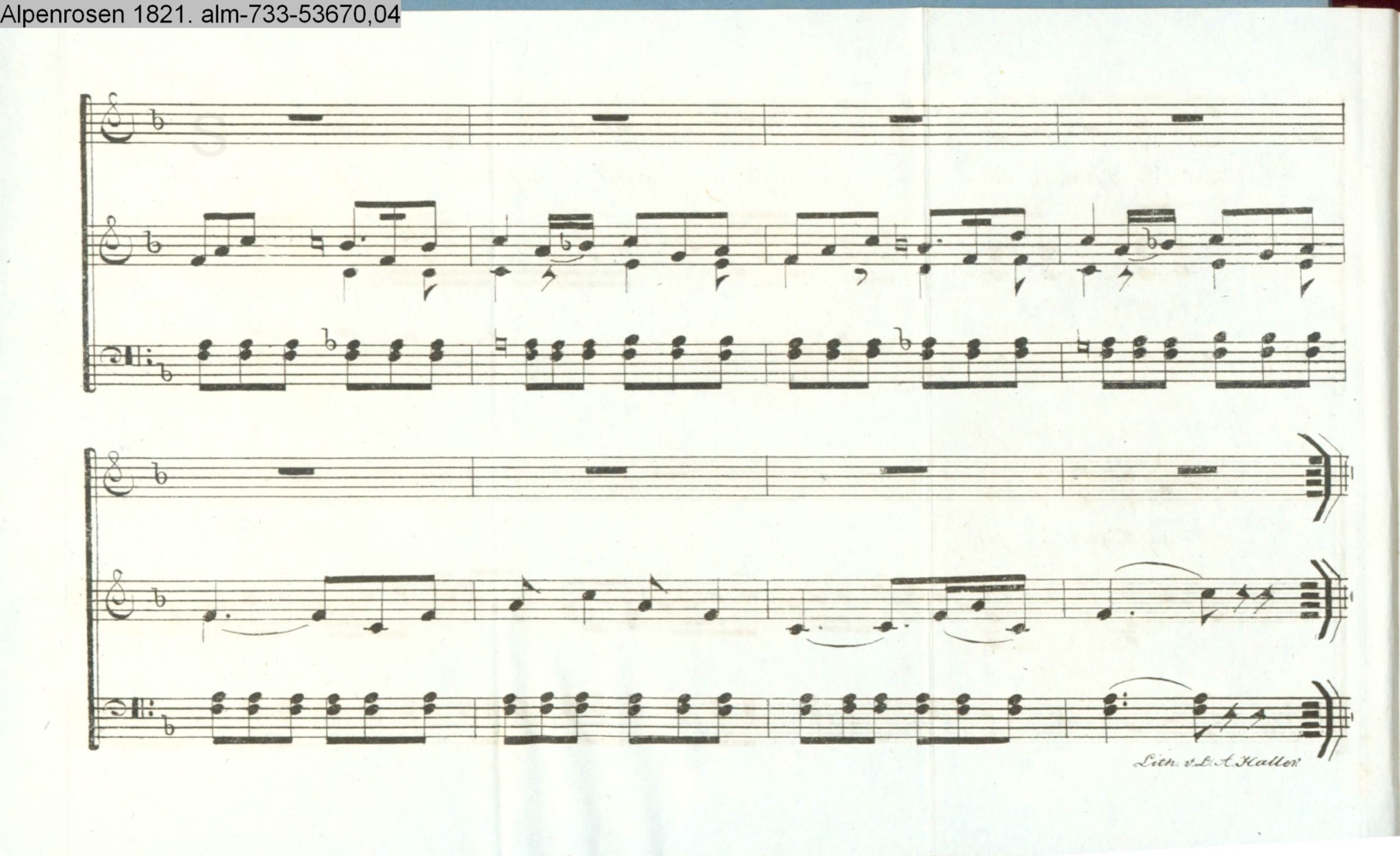 unter der Musikbeigabe: Lith. v. L. A. Haller