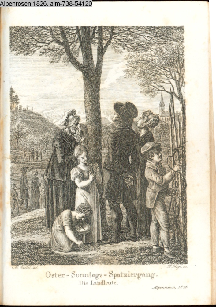 Illustration zu »Oster-Sonntags-Spaziergang. Die Landleute« von J. M. U. d.i.: J. M. Usteri