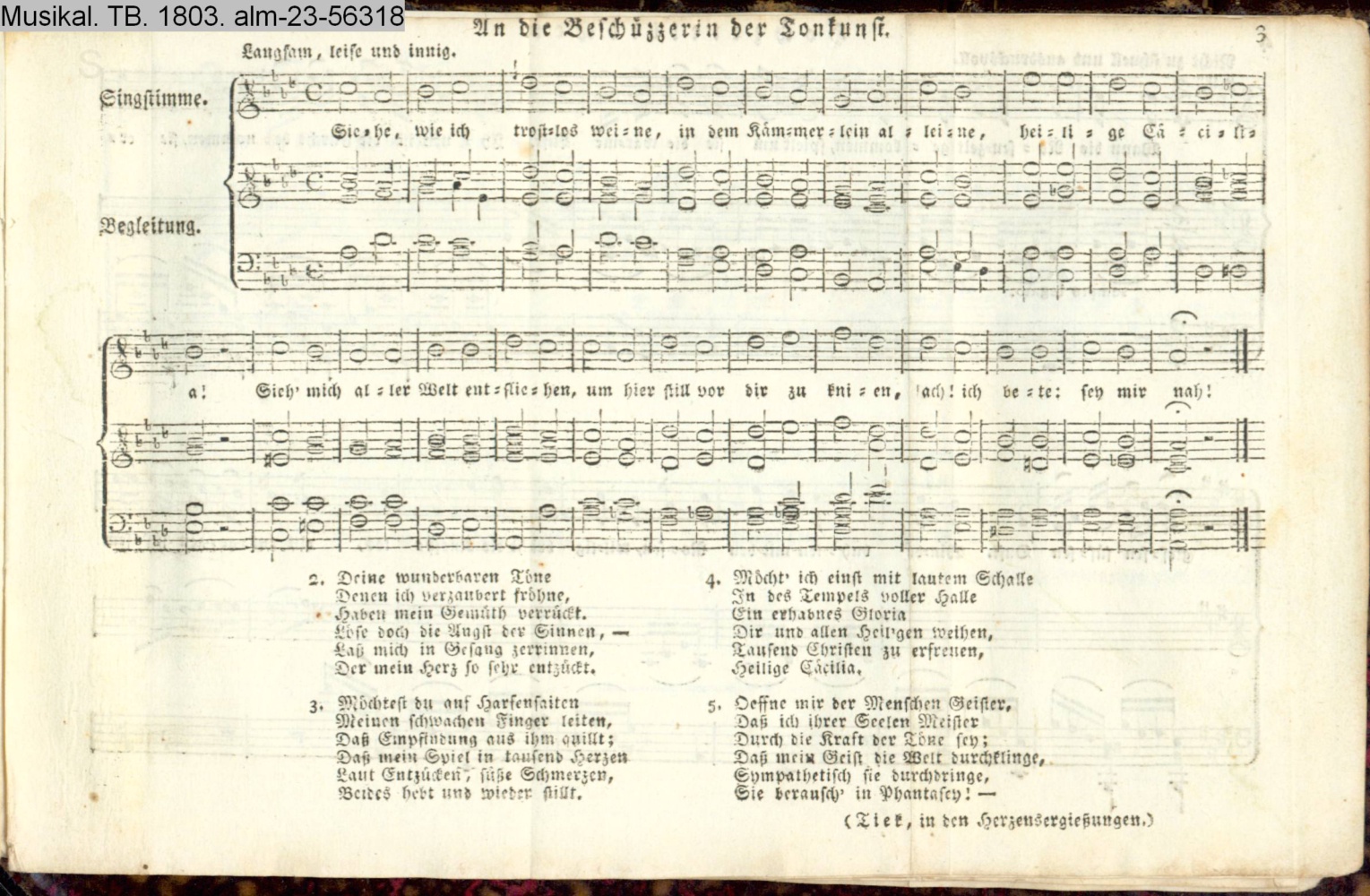 Lieder zum musikalischen Taschenbuche 1803 der Brüder Werden componirt von Wilhelm Schneider (Sammlung INr 56317, Obj 79)