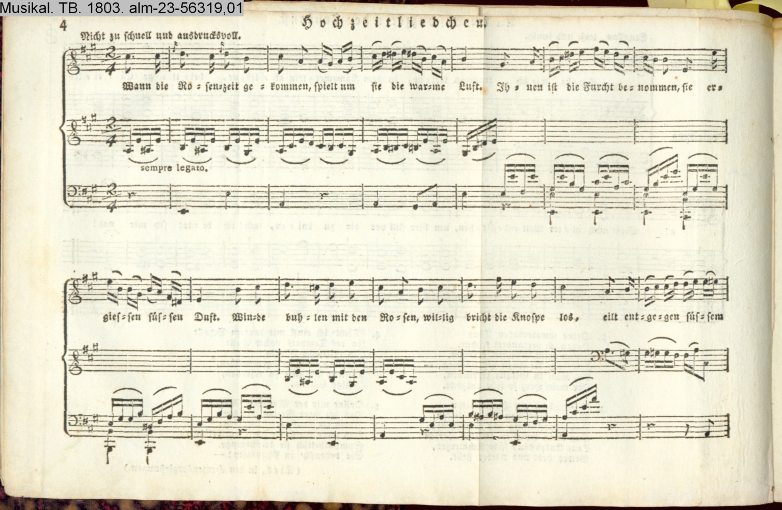 Lieder zum musikalischen Taschenbuche 1803 der Brüder Werden componirt von Wilhelm Schneider (Sammlung INr 56317, Obj 79) Photos 56319,01; 56319,02