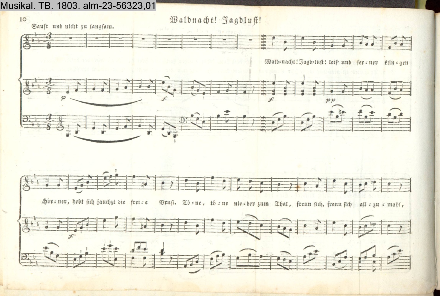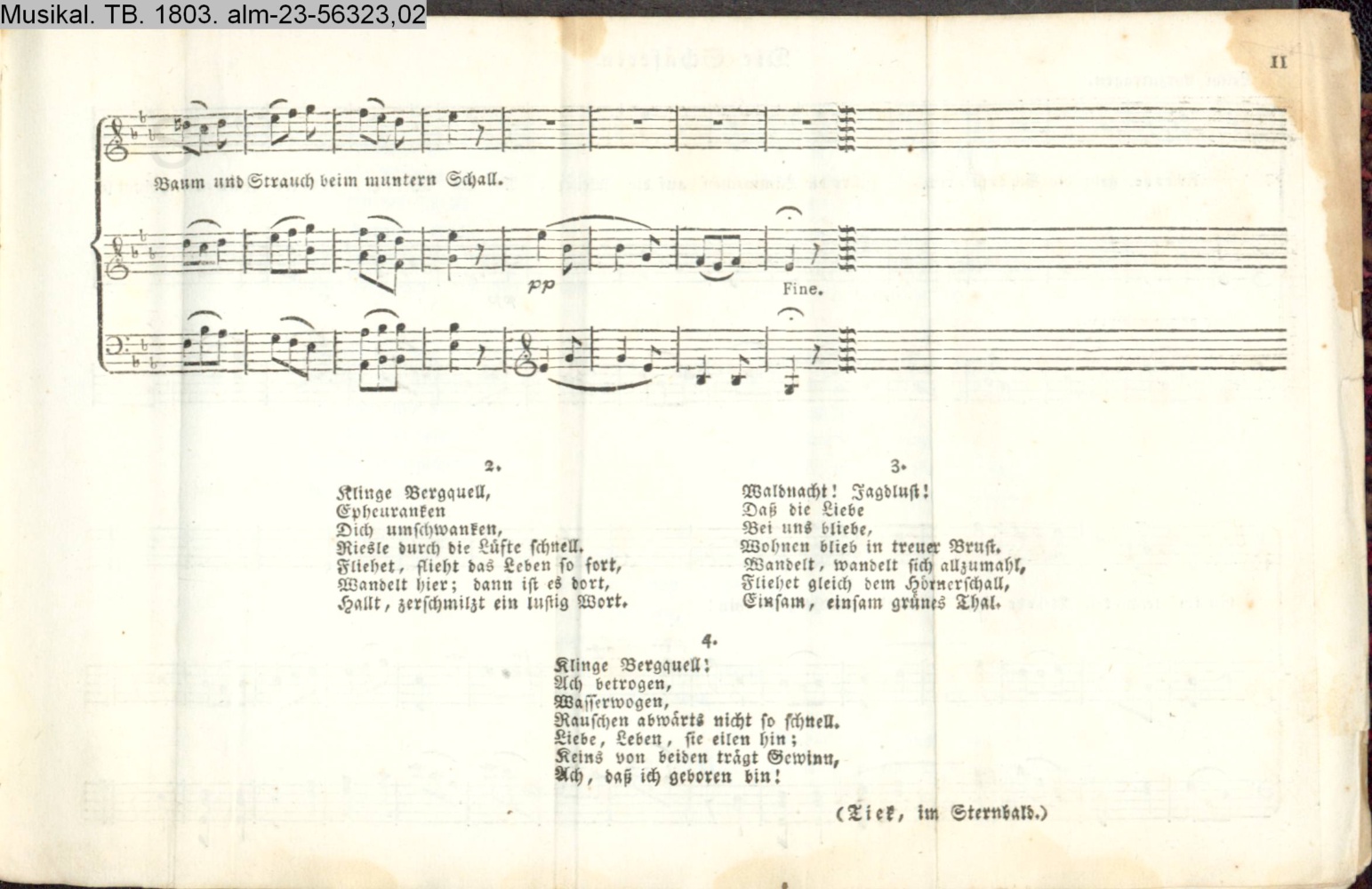Lieder zum musikalischen Taschenbuche 1803 der Brüder Werden componirt von Wilhelm Schneider (Sammlung INr 56317, Obj 79) Photos 56323,01; 56323,02