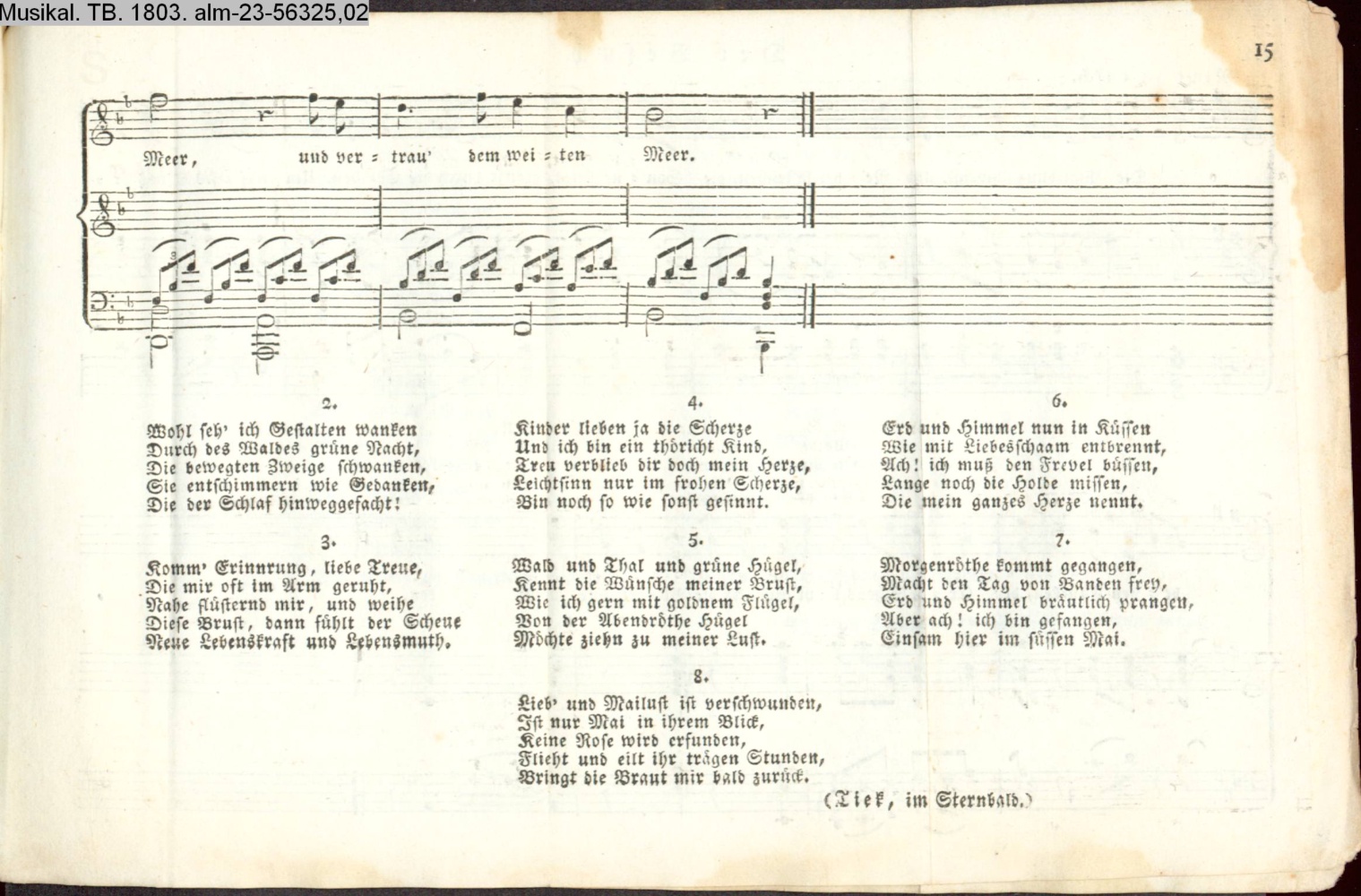 Lieder zum musikalischen Taschenbuche 1803 der Brüder Werden componirt von Wilhelm Schneider (Sammlung INr 56317, Obj 79) Photos 56325,01; 56325,02