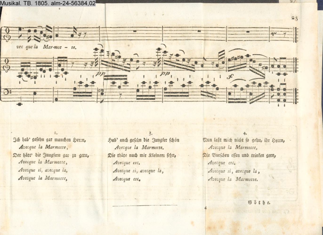 Lied des Marmotte aus »Das Jahrmarktsfest von Plundersweilern« von J. W. von Goethe