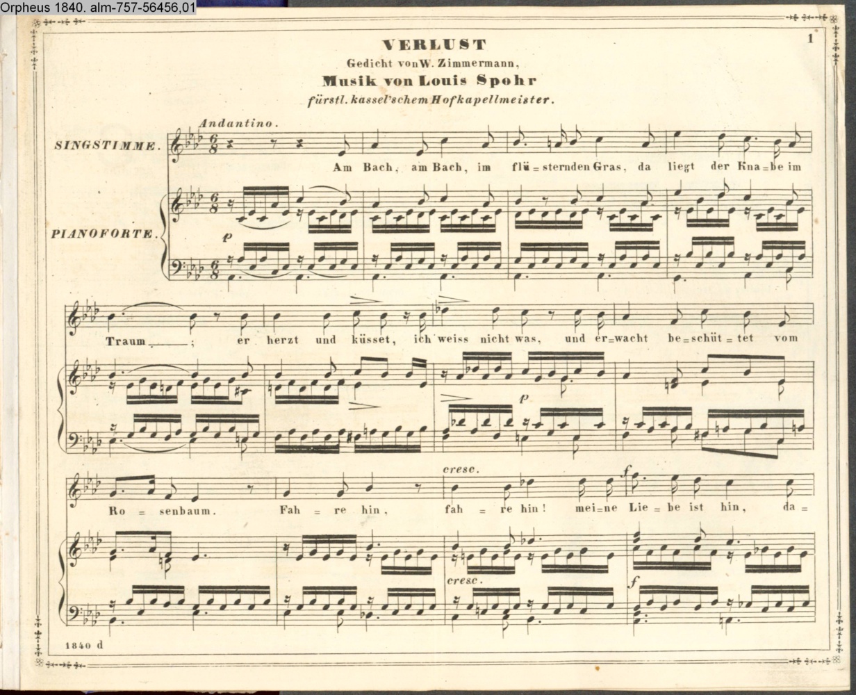 VERLUST / Gedicht von W. Zimmermann, / Musik von Louis Spohr. / fürstl. kassel'schem Hofkapellmeister