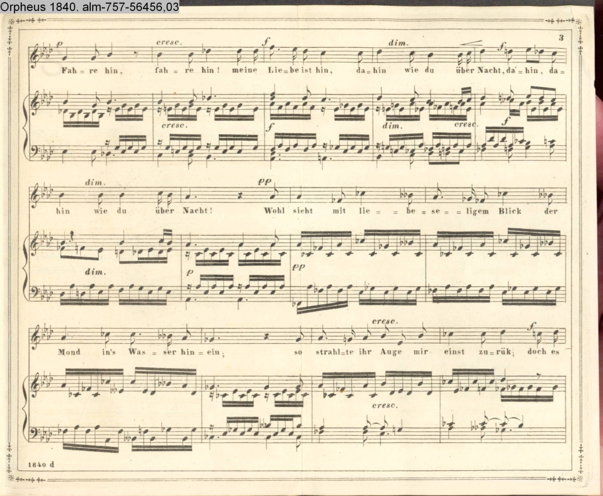 Am Bach, am Bach, im flüsternden Gras, da liegt der Knabe im Traum;…