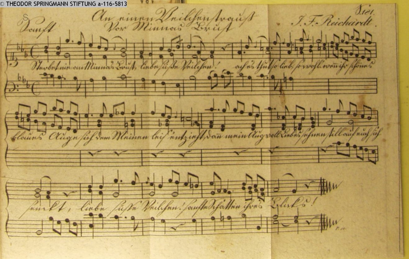 Vertonung des Gedichts »An einen Veilchenstrauß vor Minna's Brust« vom Komponisten.
